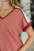 The Sew Into You V-Neck Top in Light Rust combines cozy French terry with high-stretch comfort for a playful, easygoing look. Its flattering V-neckline and banded sleeve cuffs add stylish details, while the contrast accents bring a fun pop of color. Perfect for days when you want to feel comfy and cute all at once!